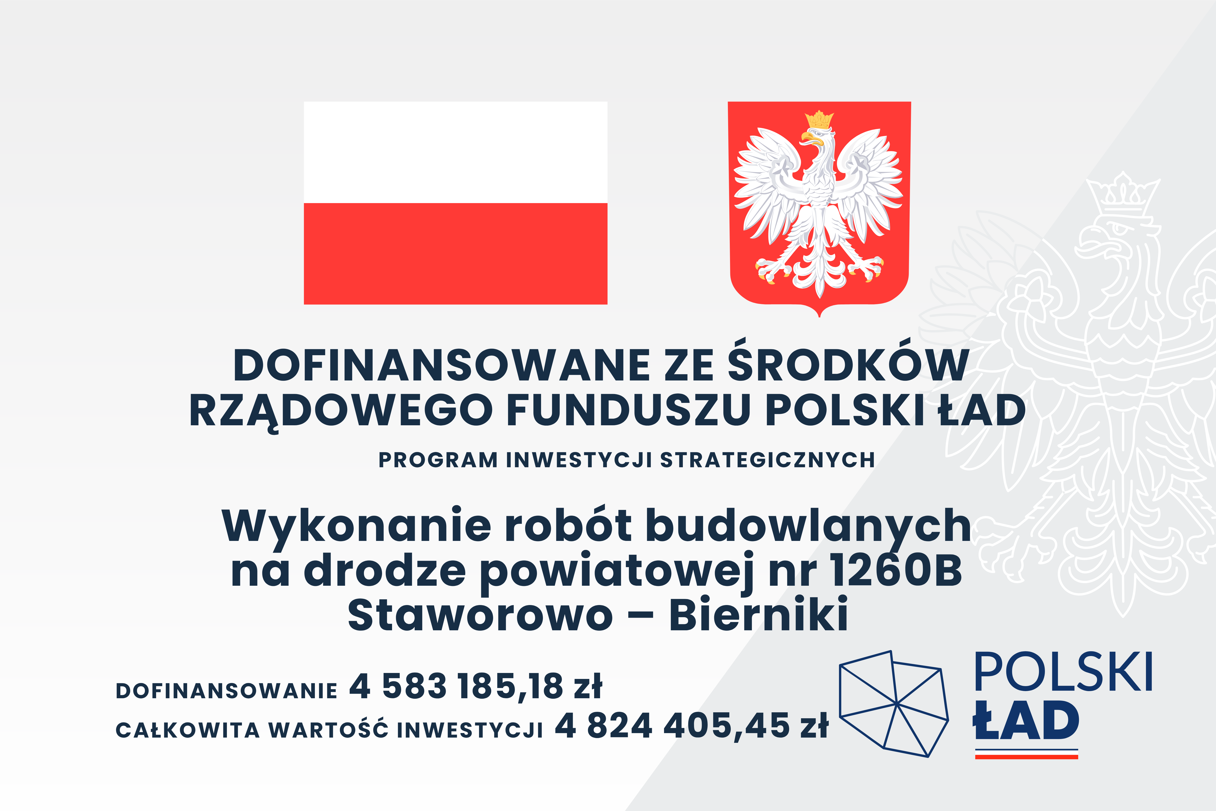 Wykonanie robót budowlanych na drodze powiatowej nr 1260B Staworowo – Bierniki